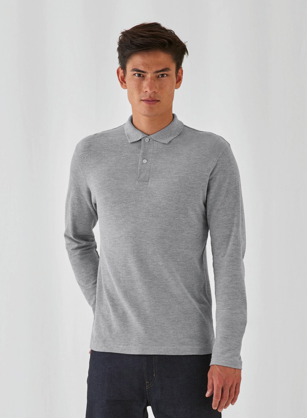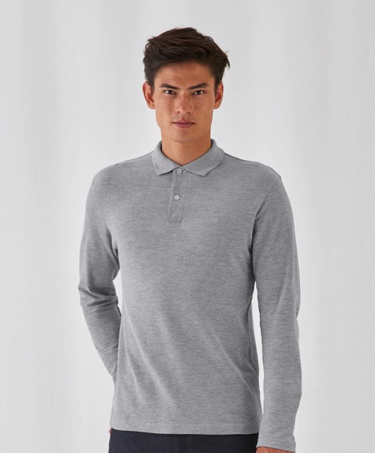 B&C - CGPUI12 - ID.001 Men's Polo Shirt Lange Mouwen * 180 g/m² - 100% katoen, voorgekrompen en ringgesponnen. Heather Grey: 90% Katoen, 10% Viscose, nektape. Ribgebreide kraag. Knoopsluiting met 2 knopen. Zijnaden. Wasbaar tot 40°C. Normale pasvorm.