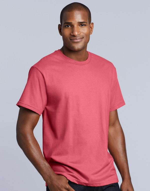 Gildan - GIH000 (GH000) - Hammer T-shirt - Korte Mouwen * 200 g/m² - 100% katoen (behalve Ring Spun Sport Grey: 90% katoen / 10% polyester). Nektape in de kraag. Dubbel stiksel aan mouwuiteinden en onderkant. De stof is een kwartslag gedraaid om de middenvouw weg te werken. Ruime snit. Uitneembaar etiket.