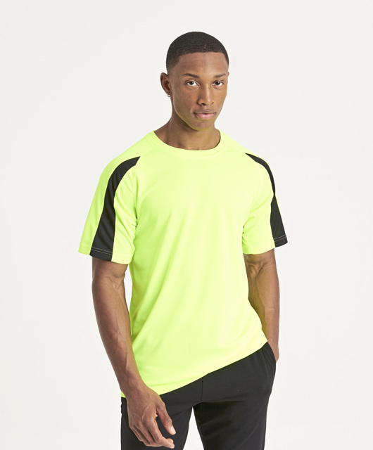 Just Cool AWDIS - JC003 * Contrast Cool T * 140 g/m². 100% Polyester. Ontspannen pasvorm. Raglan korte mouwen. Contrastkleurige inzetstukken op de mouwen. AWDis’ eigen lichtgewicht Neoteric™ textuurweefsel met inherente vocht afvoering. Ronde hals in dezelfde stof. Tweedraads gestikte boord. Nekband in dezelfde stof met tape. Inherente stretch-stofeigenschappen. Afscheurbaar etiket