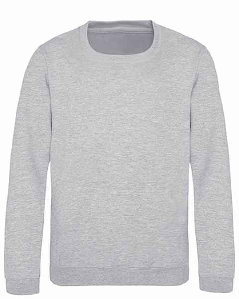 Just Hoods AWDis - JH030 * AWDis Sweat * 280 g/m². 80% Katoen / 20% Polyester (Charcoal (Heather), Graphite Heather: 52% Katoen / 48% Polyester), (Heather Grey: 75% Katoen / 25% Polyester), (Black Smoke: 70% Katoen / 30% Polyester). Sweatshirt met ronde hals. Ingezette mouwen. Zonder kap. Schouder tot schouder nekband. Geborstelde fleece aan de binnenzijde. Eenvoudig scheurlabel. Met dubbele naald gestikte details. Geribbelde kraag, manchet en zoom. Wereldwijd Verantwoordelijk Gecertificeerde Productie (WRAP) gecertificeerde productie