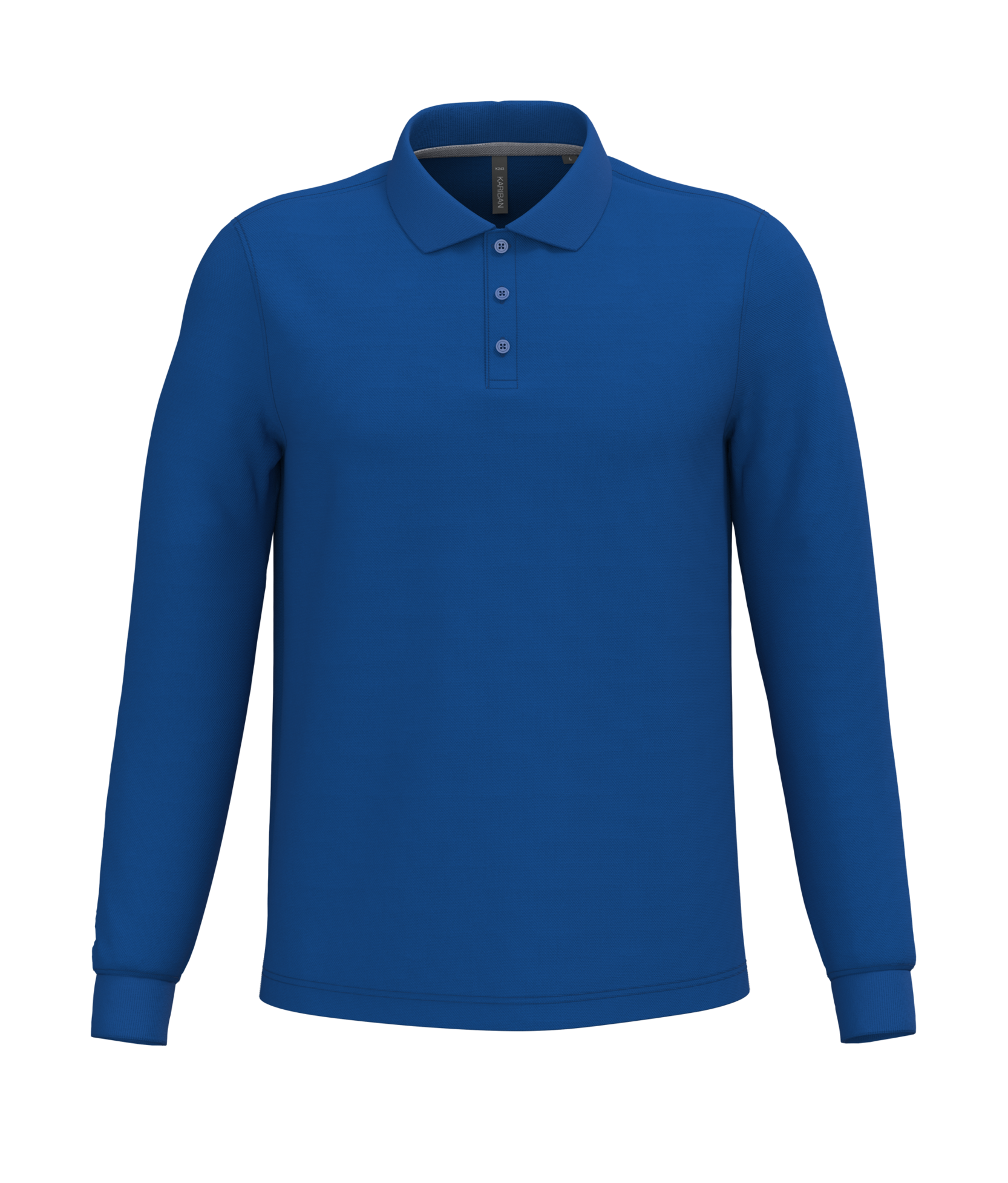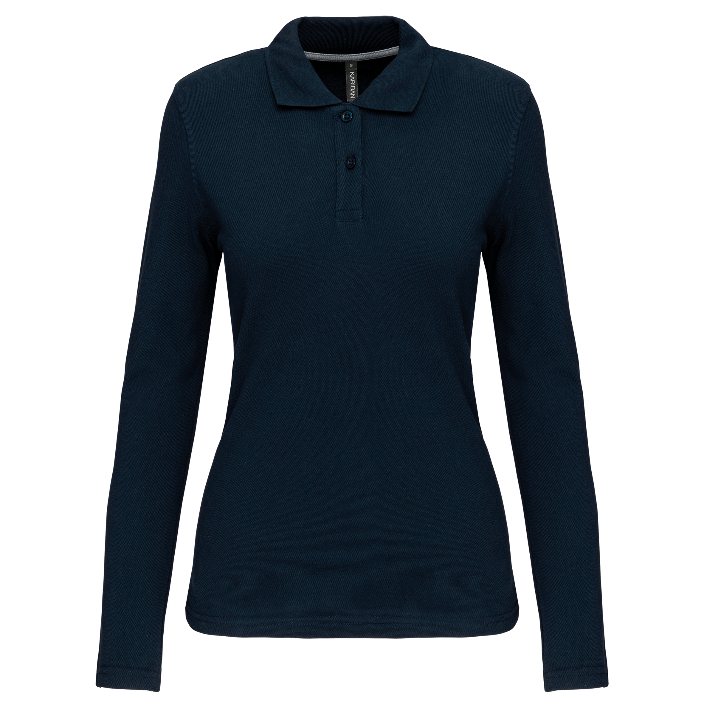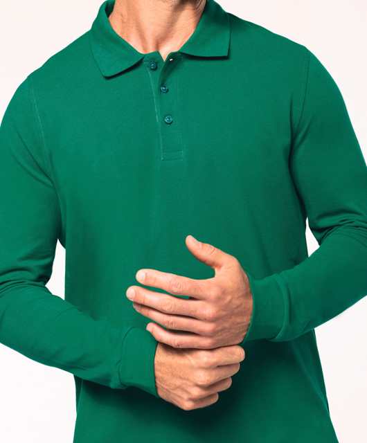 Kariban - K243 - Polo Lange Mouwen * 220 g/m² - 100% gekamd katoen - wasbaar op 60° (Oxford Grey: 90% katoen / 10% viscose - wasbaar op 40°). Piqué. Kraag in rib. Nektape en zijsplitjes in Oxford Grey voor alle kleuren behalve Oxford Grey daarvan zijn ze Dark Grey. Knooplijst met 3 knopen. Afwerking met dubbele stiksels aan de onderkant. Mouwuiteinden in rib.