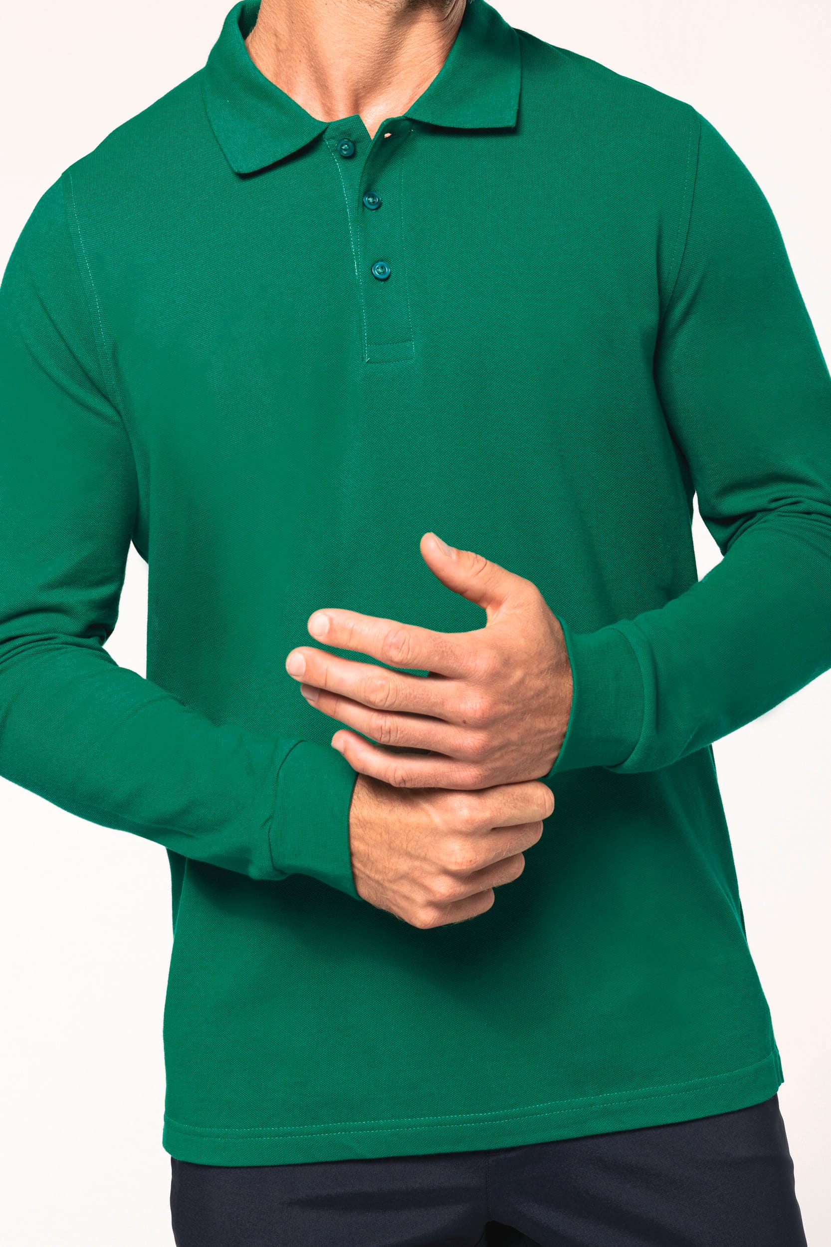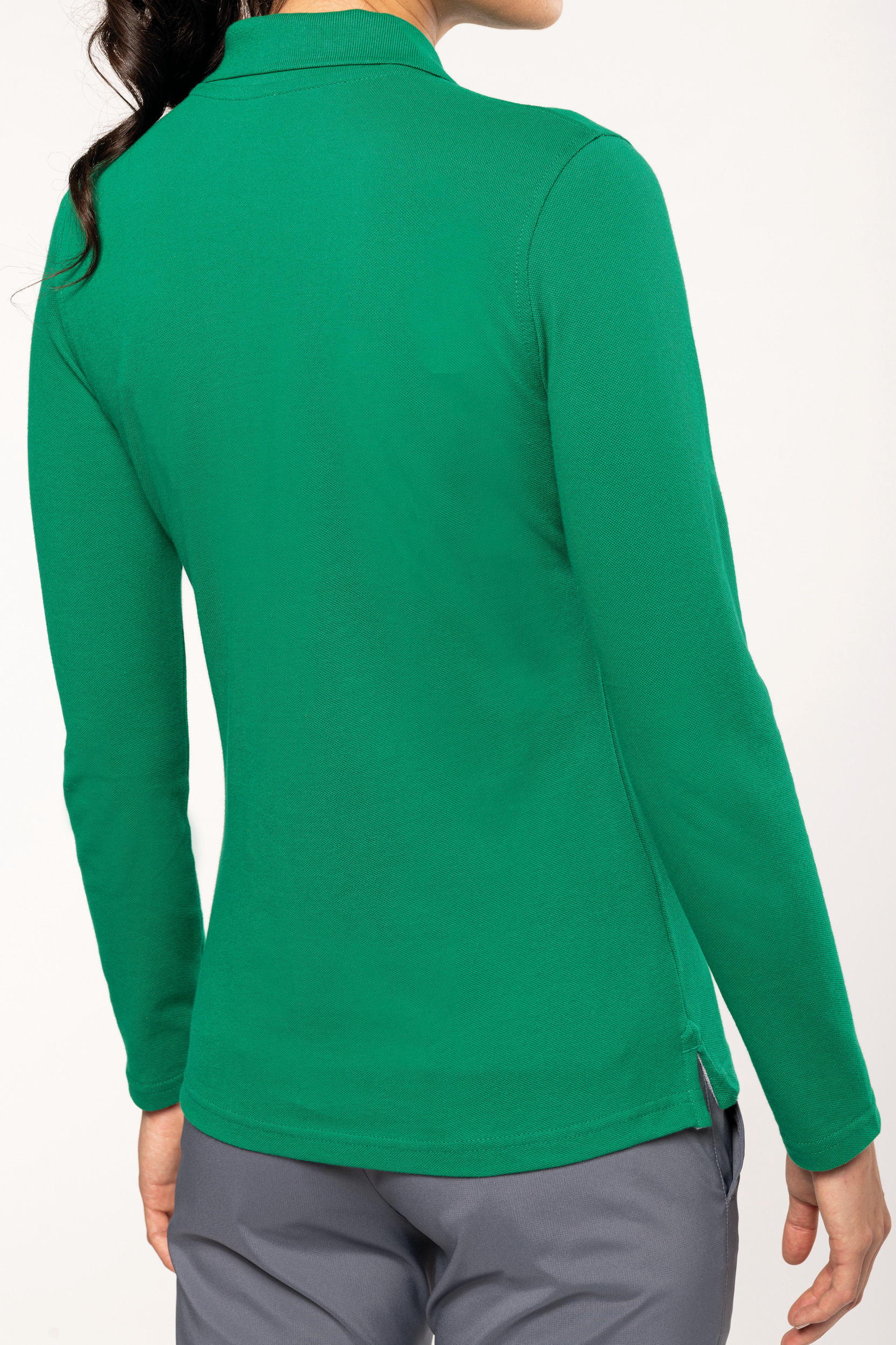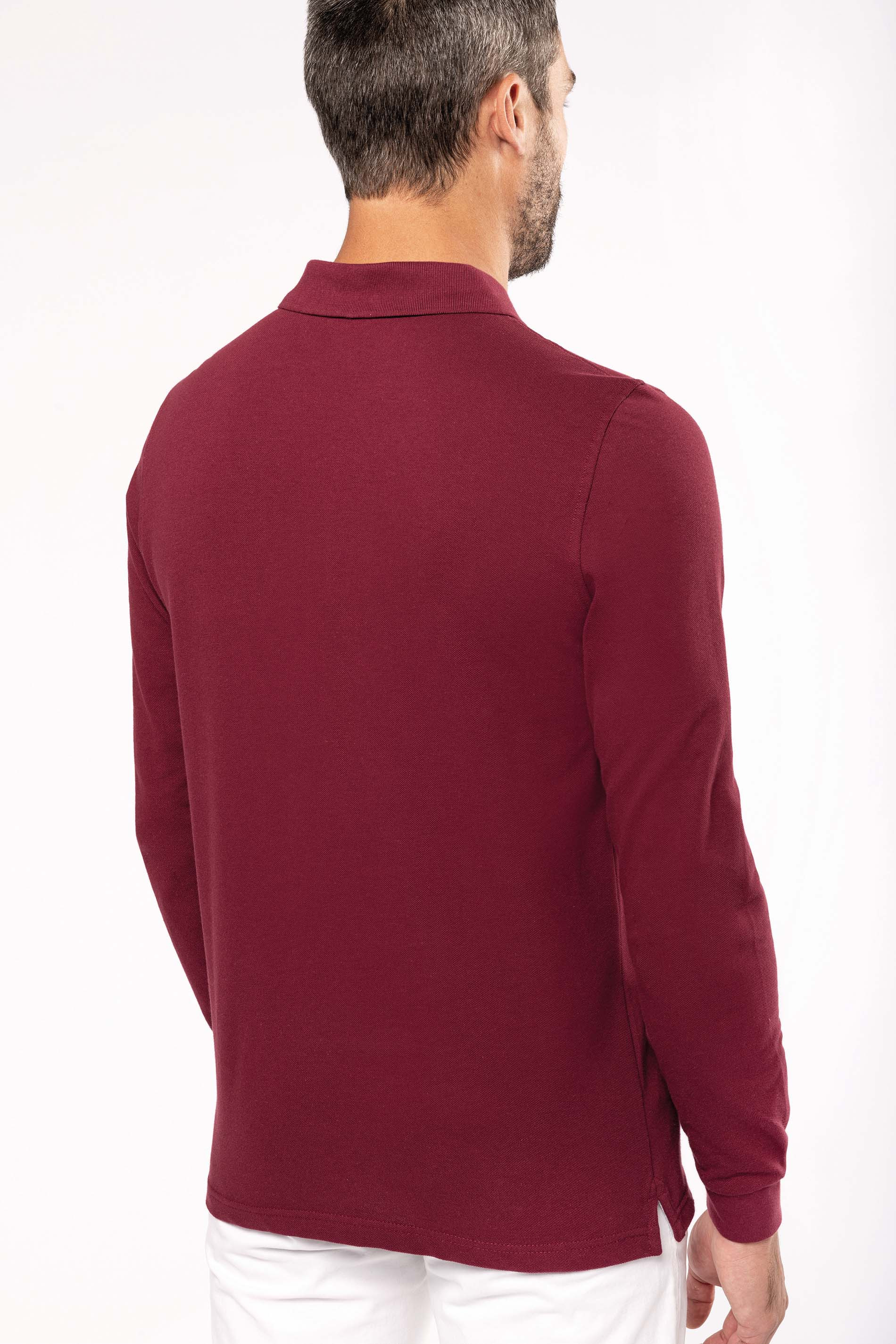 Kariban - K243 - Polo Lange Mouwen * 220 g/m² - 100% gekamd katoen - wasbaar op 60° (Oxford Grey: 90% katoen / 10% viscose - wasbaar op 40°). Piqué. Kraag in rib. Nektape en zijsplitjes in Oxford Grey voor alle kleuren behalve Oxford Grey daarvan zijn ze Dark Grey. Knooplijst met 3 knopen. Afwerking met dubbele stiksels aan de onderkant. Mouwuiteinden in rib.