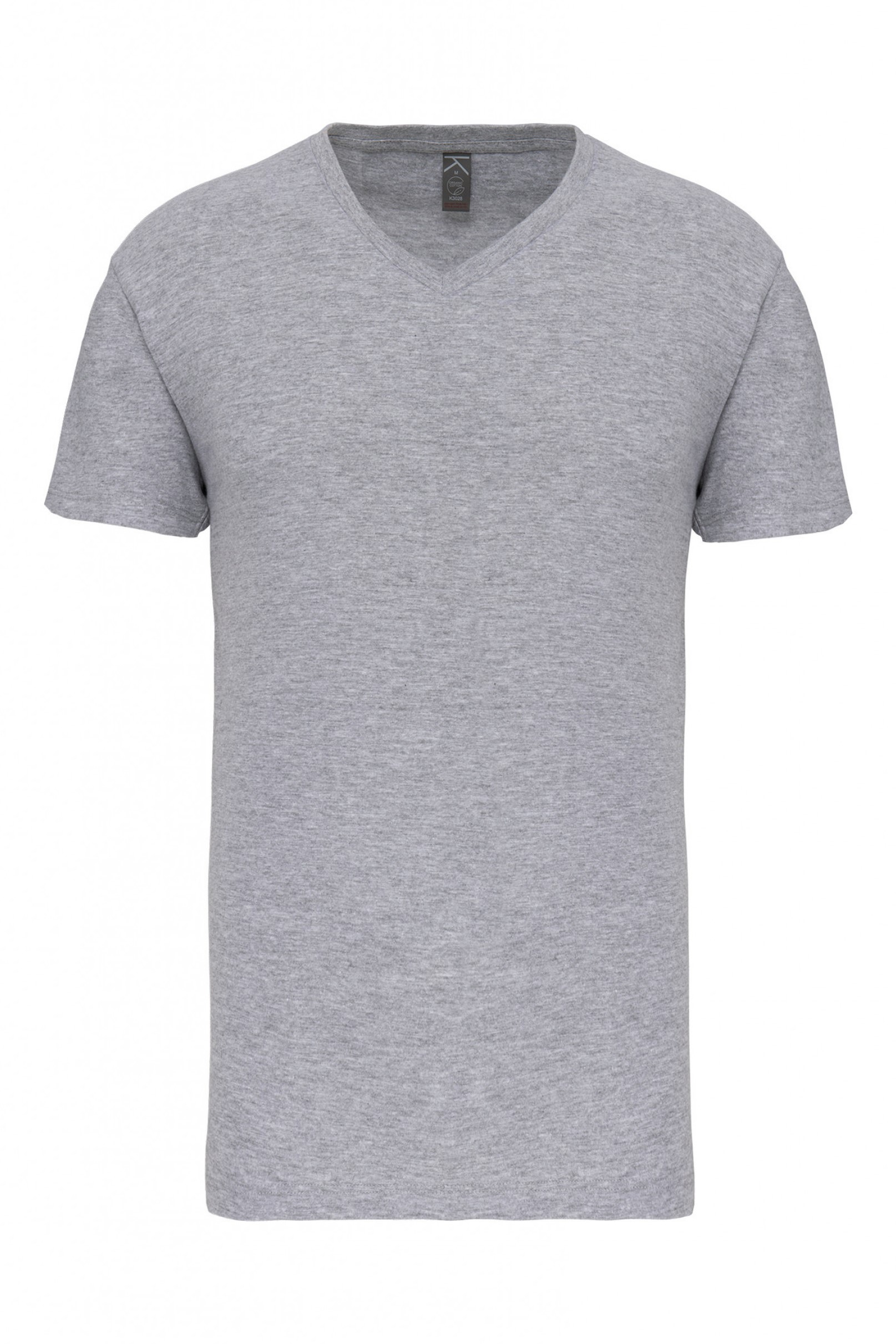 Kariban - K3028IC - Heren-t-shirt BIO150 V-Hals * 145 g/m² - Effen kleuren: 100% katoen. Kleur Ash Heather 98% katoen / 2% viscose en Oxford Grey: 90% katoen / 10% viscose. Alle kleuren zijn gemaakt van biologisch katoen. De labels OCS (Organic Content Standard) en OCS Blended worden afgeleverd door Ecocert Greenlife. V-hals in ribboord met elasthan. Ton-sur-ton nektape. Buisvormig. Dubbel stiksel aan mouwuiteinden en onderkant.