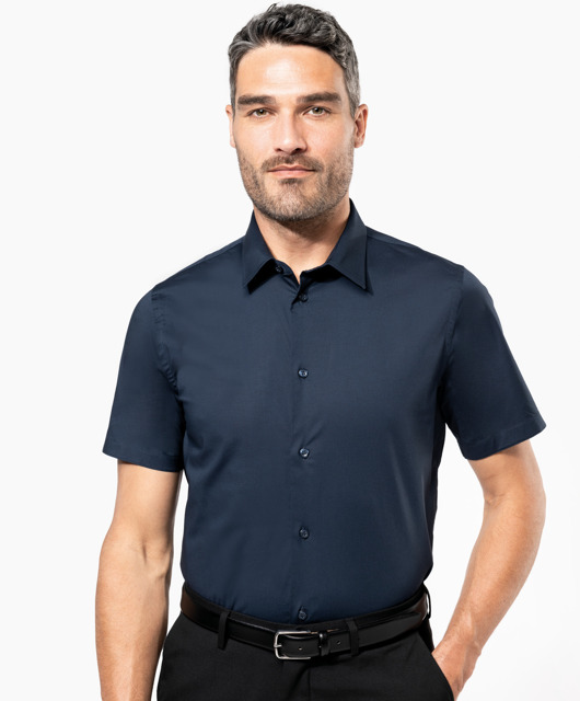 Kariban - K531 - Heren Stretch Overhemd Korte Mouwen * 120 g/m² - 97% katoen / 3% elasthan. Getailleerd overhemd en comfortabele pasvorm. Verstevigde kraag. Toon op toon knopen. Dubbel inzetstuk op de rug. Plooitjes aan de achterkant. Afgewerkt met dubbele vouwnaden. Mouwuiteinden omgezoomd. 1 extra knoop. Afgerond boord aan de onderkant.