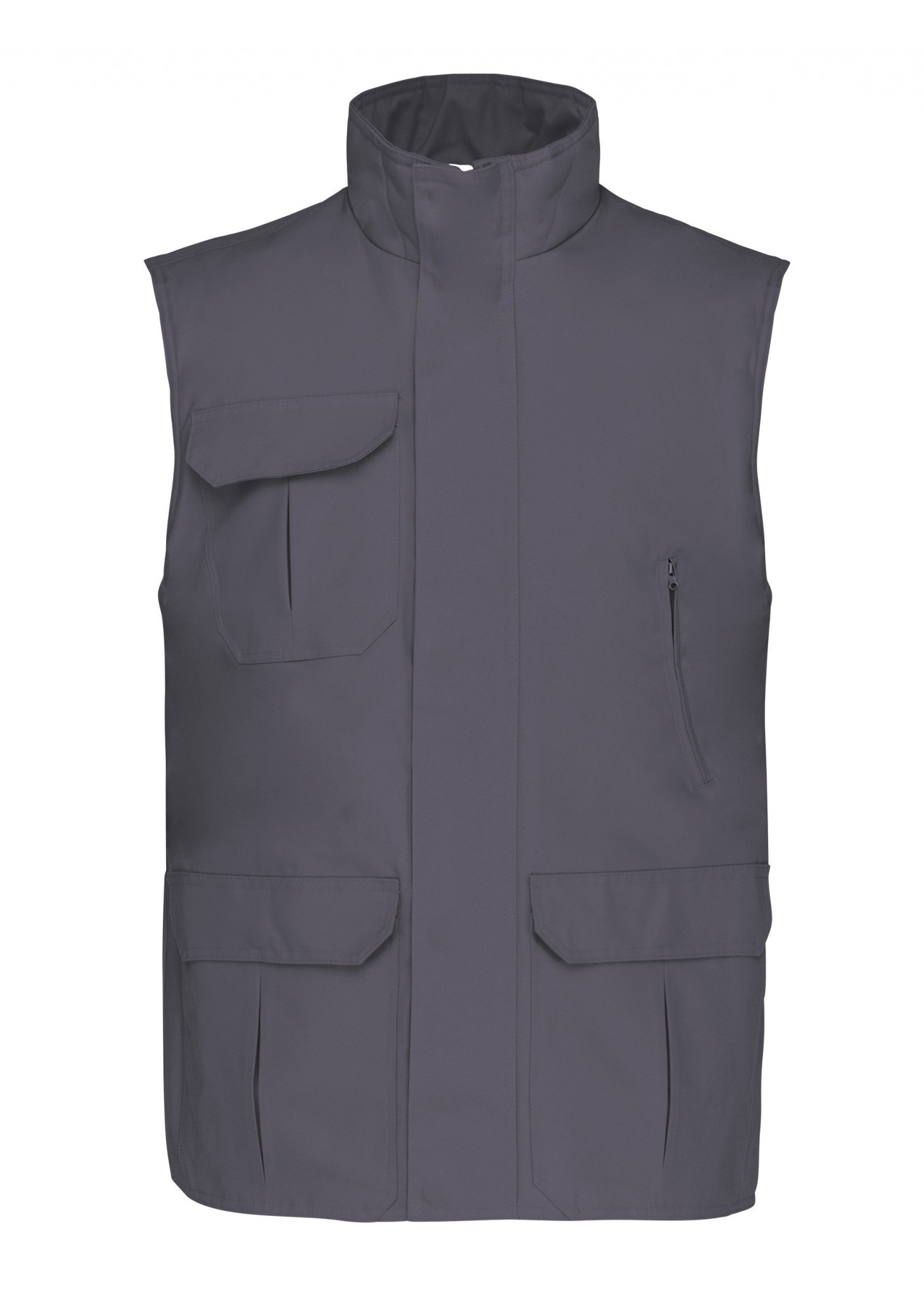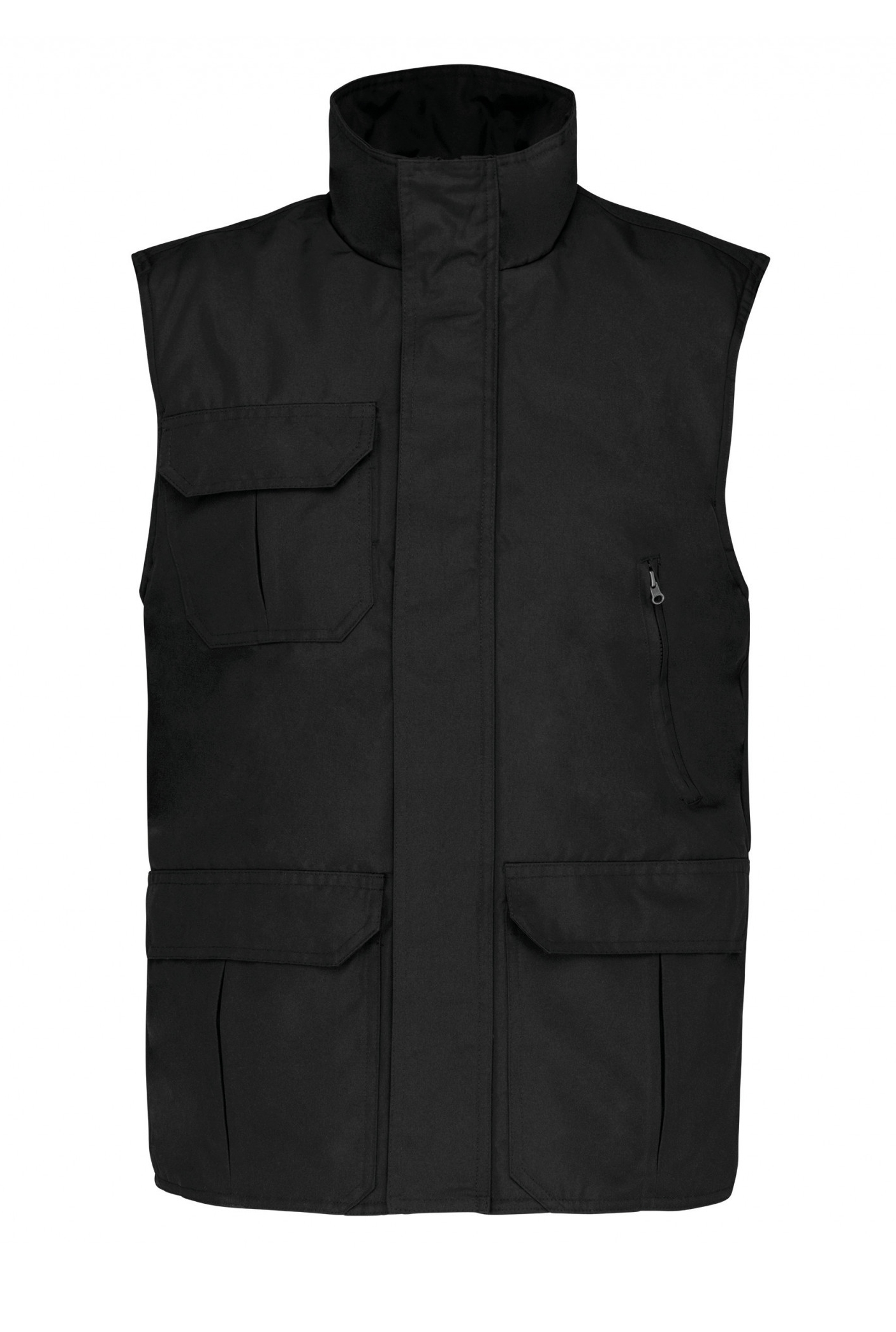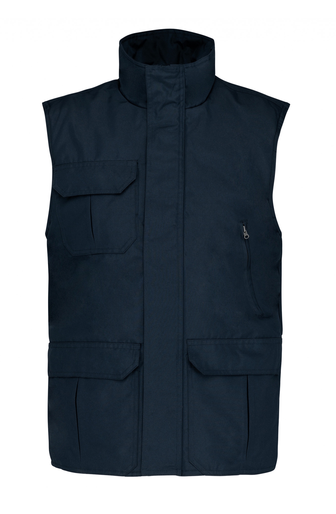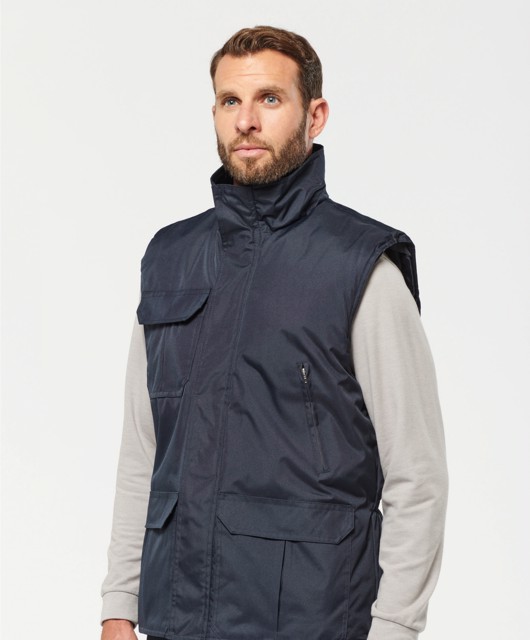 Kariban - WK630 - Worker - Bodywarmer * Buitenkant: 100% oxford polyester met PVC inductie. Gewatteerde voering met 100% polyesterwatten. Ritssluiting verborgen onder een lijst met drukknopen. 4 buitenzakken (3 met overslag en 1 met rits). Elastische armsgaten en regelbaar met een stopper. 2 binnenzakken (1 met rits en 1 gsmzakje). Drukkersrits.