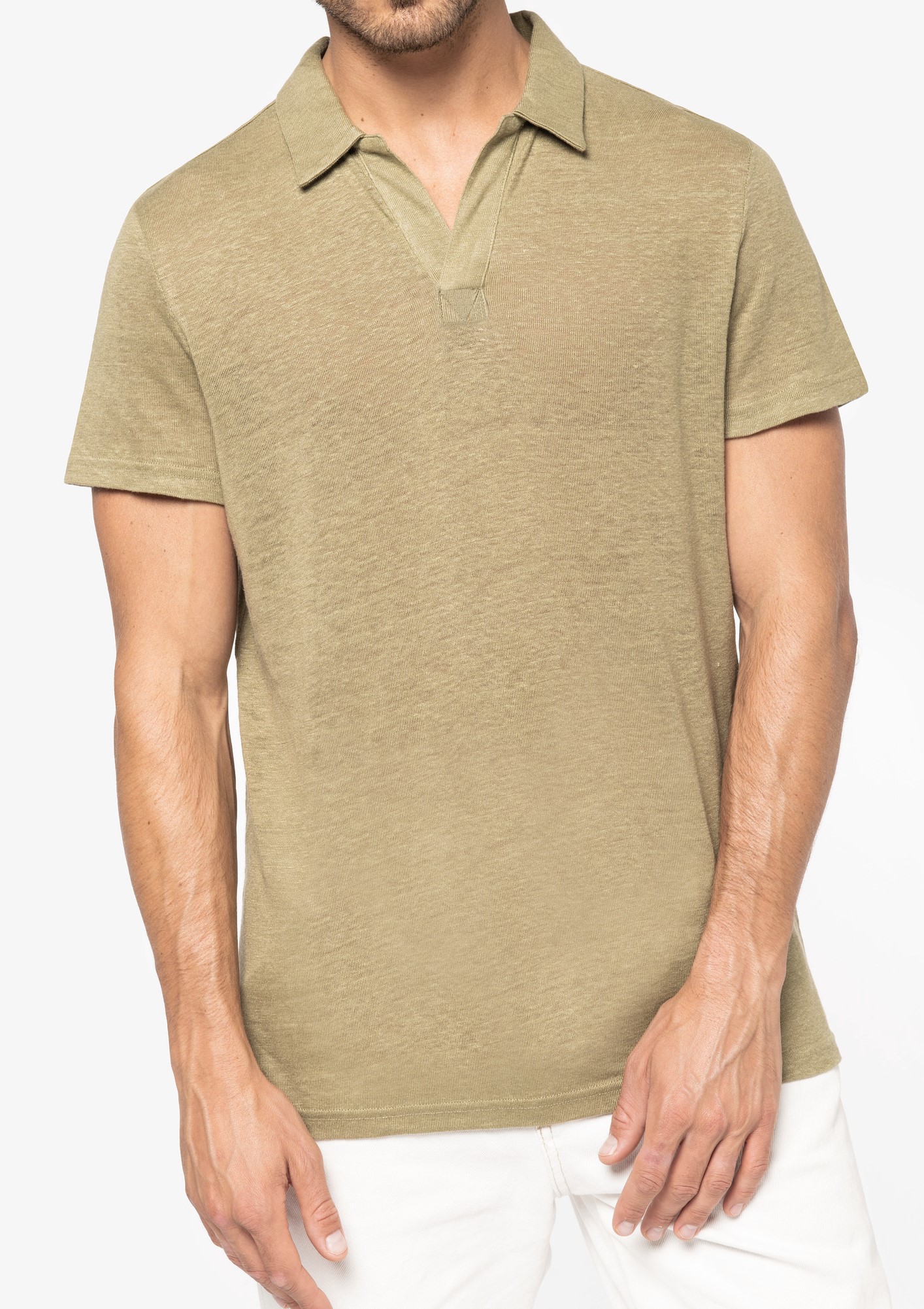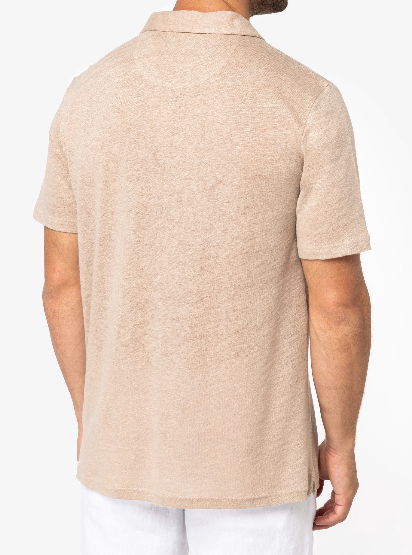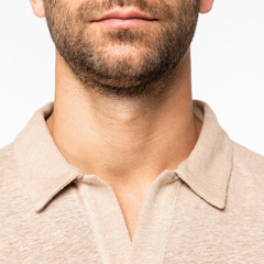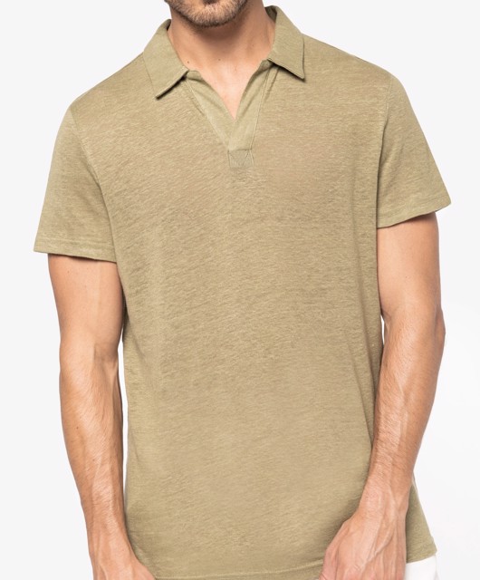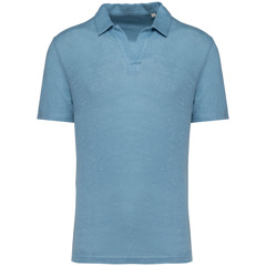Native Spirit - NS220 * Linnen herenpolo * 190 g/m². 100 % linnen. Een lichte en ademende stof. Casual-chique stijl. Fitted pasvorm. Polokraag met staander en V-hals. met knooplijst zonder knoop in de hoofdstof. Dubbel stiksel aan de mouwboorden en de zoom. Zijsplitten met aan de binnenkant nektape in de hoofdstof. Halvemaan op de achterkant
