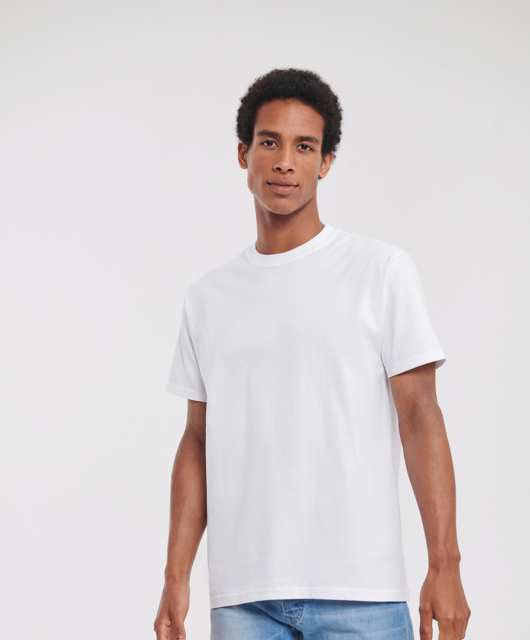 Russel - RUZT215 - Classic Heavyweight T-shirt * 210 g/m² - 100% gekamd ringgesponnen katoen. Tubulaire snit. Nektape van schouder tot schouder. Kraag 1x1 rib. Afwerking dubbele stiksels.