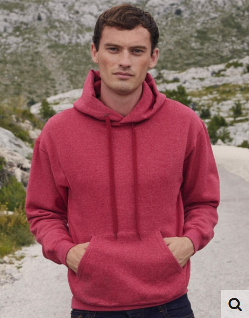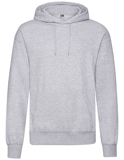 Fruit of the Loom - SC244C (F421) - Classic Hooded Sweat * 280 g/m² - White en Heather Grey - 260 g/m². 80% katoen / 20% polyester (Dark Heather Grey 60% katoen / 40% polyester). Gevoerde capuchon. Platte aanrijgkoordjes toon op toon. Kangaroezak. Mouwuiteinden en onderkant in rib van katoen/Lycra®.