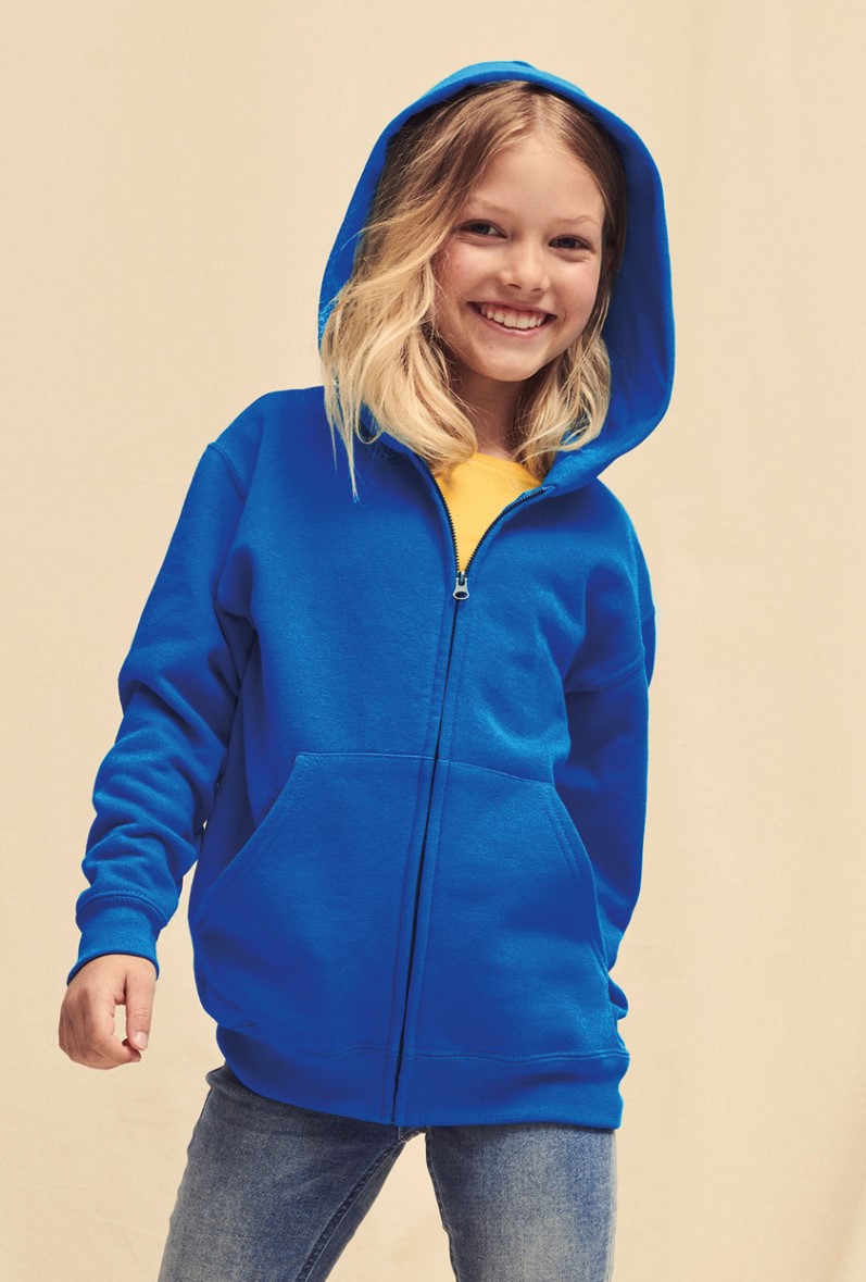Fruit of the Loom - SC62045 (F401NK) - Kids Classic Hooded Sweat Jacket * 280 g/m² - 80% katoen / 20% polyester. Toon op toon nektape in jersey. 'Kangaroe' zak. Gevoerde capuchon zonder aanrijgkoord conform de EU-regelgeving voor kinderen. Volledige ritssluiting. Mouwuiteinden en onderkant in rib katoen / Lycra®.
